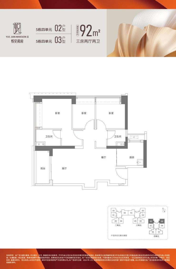 【产品面积】建面约92-129m²3-4房