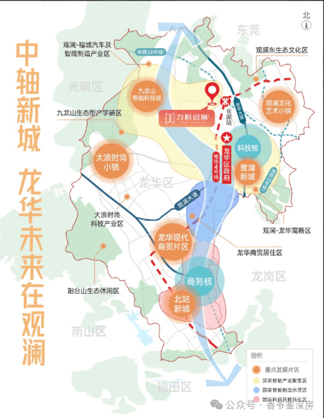 万科启城坐落于深圳市龙华区观澜大道与碧澜路交汇处西北侧,占据着龙华区的核心位置。这里是大湾区与先行示范区双重政策利好的叠加区域,是深圳新界面的重要组成部分,也是龙华区重点规划的三个城市核心区之一。随着区域规划的不断升级,万科启城所在的片区正迎来前所未有的发展机遇。