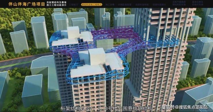 尤其是那座悬于150米高空的连廊,外观轻盈优雅,实则凝聚着精湛的工程技术。住宅部分采用框支剪力墙结构,办公酒店则运用框架核心筒设计,均为经过验证的成熟体系,为居住和使用构筑了坚实的安全屏障。裙房采用框架结构,得以创造出宽敞的跨度空间,便于灵活布局商业与公共区域。施工中最具挑战性的当属高空连廊的建造:工程伊始,进行定制化模块精密加工;随后在裙房屋顶完成组装;接着借助吊臂等提升设备,将连体缓缓升入空中;最终与三座塔楼预先制备的连接件实现无缝对接。鉴于其庞大体积、高空作业界面及巨大施工难度,整个施工过程必须一丝不苟地遵循既定方案,确保万无一失。历经精密计算与高效现场协作,连廊在百米高空精准合龙,完美融合结构美学与工程技艺,为深圳天际线增添了一道既轻盈又充满力量的风景线。