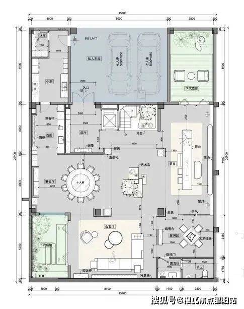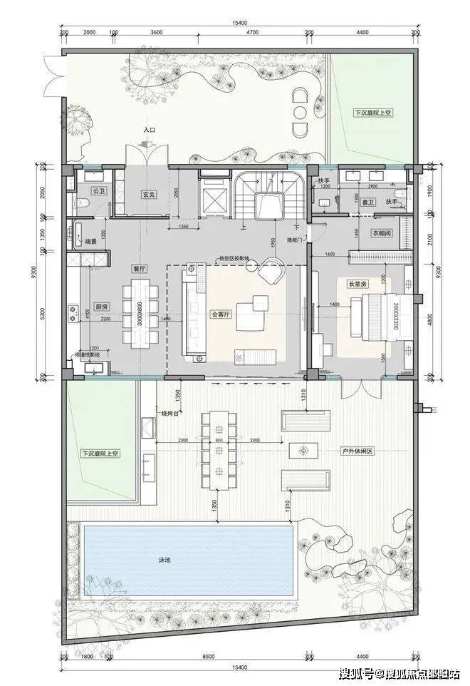 负一层下沉庭院周边设工人房、家政间,储物无忧;