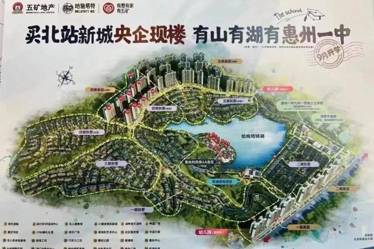 五矿哈施塔特,以哈尔施塔特小镇为蓝本,结合惠州本土风情打造的高端别墅及高层住宅产品;占地96万㎡,建面123万㎡,分5期开发,有着超低的1.35容积率以及高达41%的绿化率。