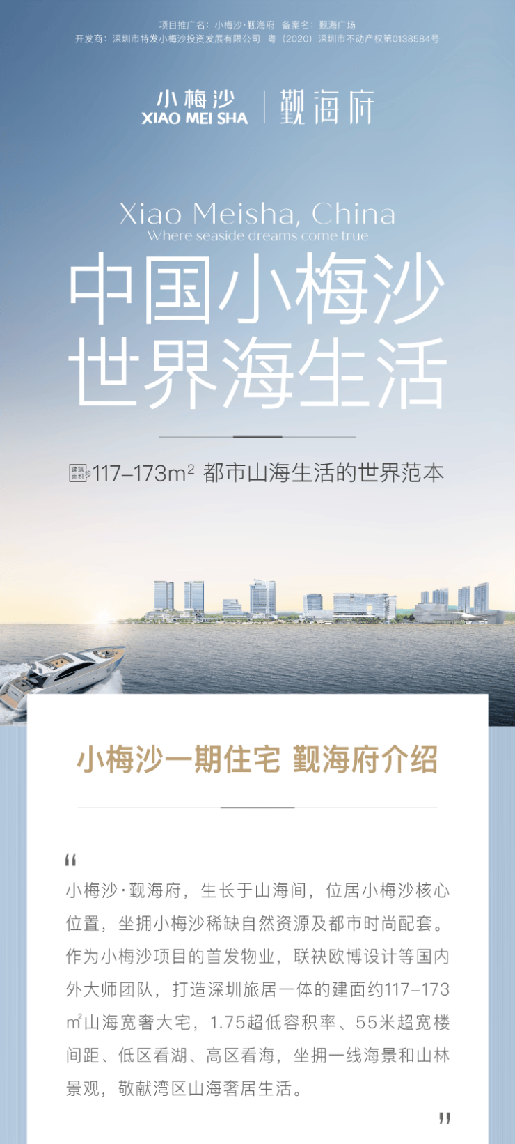 小梅沙投资匠心打造高端住居产品,倚山亲海间,奢适生活融入度假理念,承载深圳约260公里黄金海岸线宜居生态标杆。
