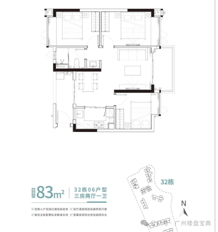 广地花园主推全新组团广地花园·观灏,建面约80-128㎡湖景准现房,可谓是丰俭由人,至于户型设计,虽然是“旧规”,但使用场景是值得点赞的,近期还加推了32栋准现房,建面80-87平的三房。
