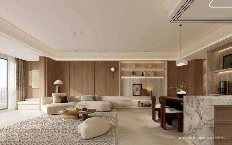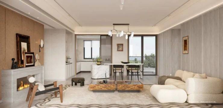 约60平的宴会级别的无界方厅,能同时容纳一个家族,十几二十个人开party,这才是真正的奢华。