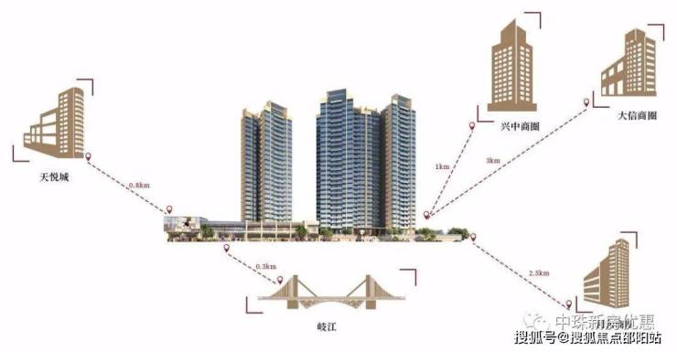 ◎ 项目择址中山主城区两大核芯——石岐区、西区交汇地段,悦享城央繁华生活区,坐享城芯繁华,天悦城、兴中商圈、利和商圈、大信商圈等都会繁华坐标环绕,购物、娱乐、休闲、就餐一应俱全,多元化醇熟繁华举步可享,全龄皆享都会生活繁盛业态。