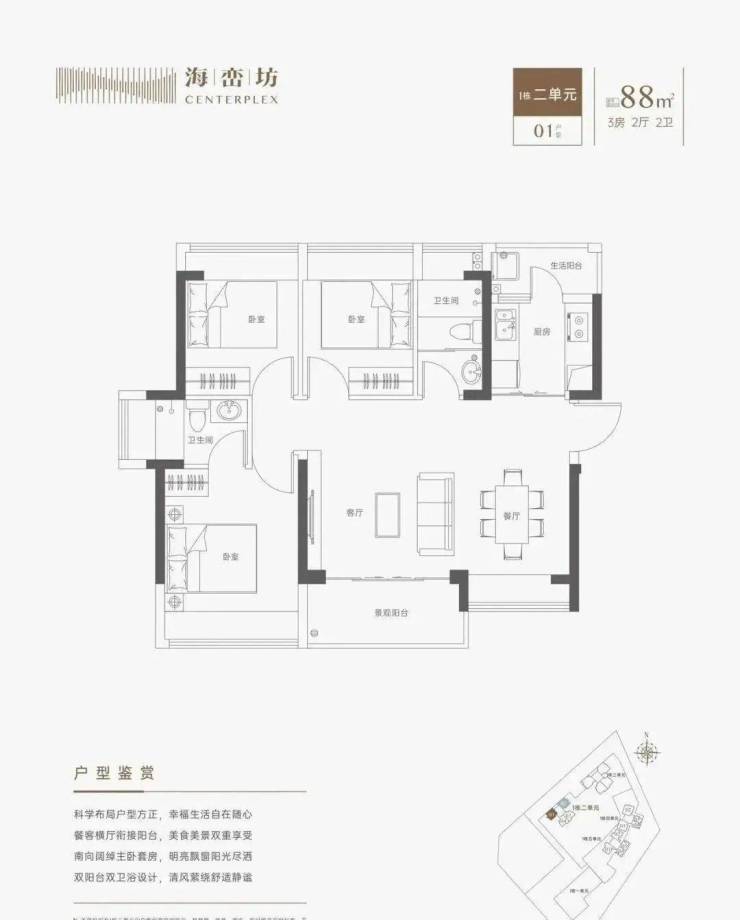 【约88㎡ 3房2厅2卫】