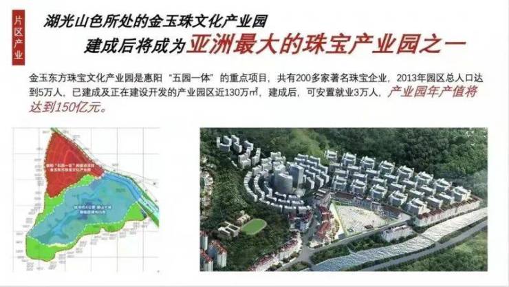 项目周边有金玉东方珠宝文化产业园(是惠阳“五园一区”的重点项目,也是深圳珠宝产业双转移基地)。还有梅龙湖智能制造产业园(总规划用地约25.67平方公里(比半个澳门还要大),致力打造粤港澳大湾区“产城人”融合发展新标杆、深莞惠区域协同发展智能制造新高地。