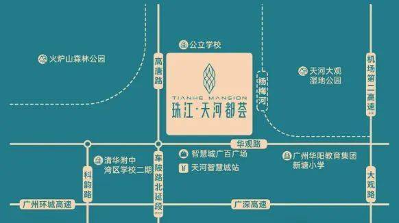 交通十分便捷。地铁方面,距离广州地铁 21 号线天河智慧城站约 600 米(直线距离),3 站可达金融城,且有 10 号线二期(规划中)、29 号线(规划中)三线交汇;毗邻东环城际(建设中)智慧城站,可接驳机场及广州南站。自驾拥有四横(广汕公路 / 华观路 / 沈海高速 / 广园快速)、四纵(华南快速 / 科韵路 / 机场快速 / 大观路)交通路网,半小时可畅达主城区。小区还设有公交首末站,无缝接驳广州生活圈,无论是公共交通还是自驾出行都极为便利。