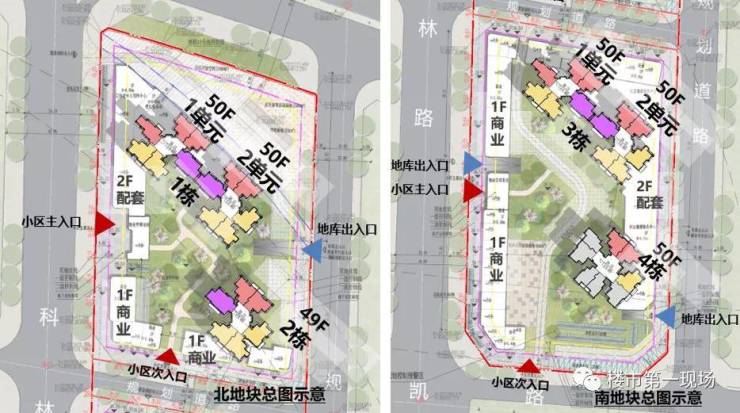 项目总用地面积约28564.79㎡,建筑面积约162340㎡,规定容积率≤6.0,由南北两地块组成,规划4栋150米超高层住宅,其中1栋(1、2单元)、3栋(1、2单元)和4栋为50层,2栋为49层。