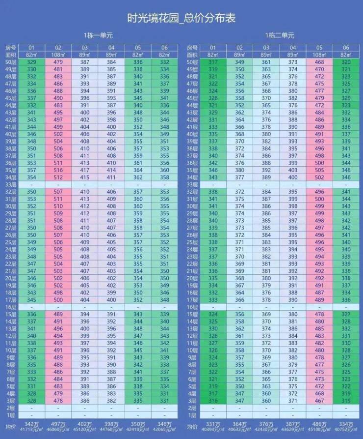 中海时光境在售户型价格: