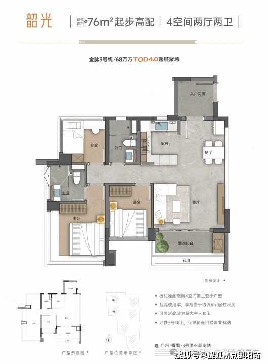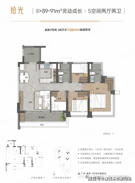 依托3号线半小时共享广州黄金三角CBD+万博CBD+南沙CBD商圈配套;商圈金脉之上,串联万亿CBD及繁华都市商圈。