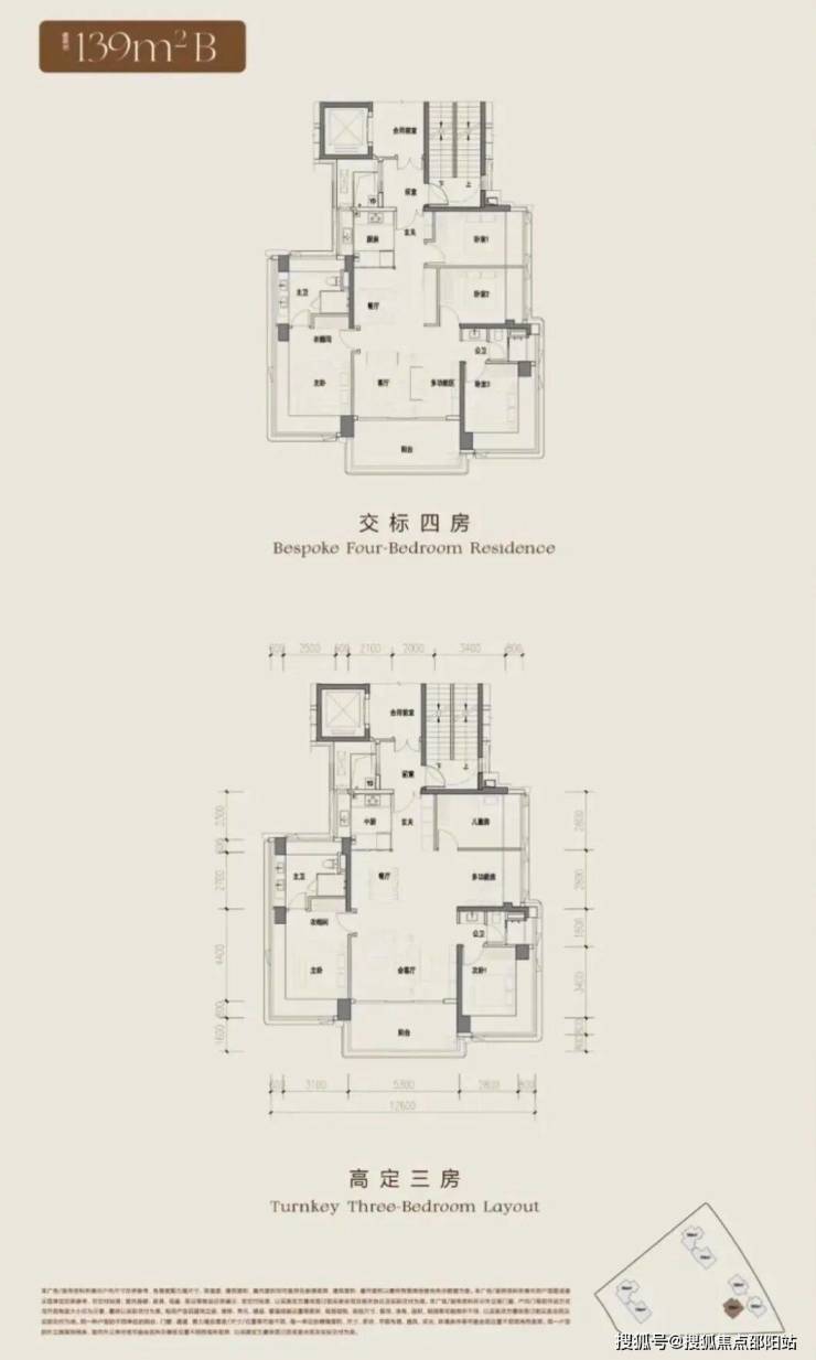 139㎡的4房2厅2卫,折后总价1690-1941万/套,折后单价12.19-13.95万/㎡。