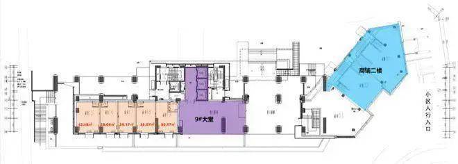 9栋2层商铺共计5套,约165.04㎡,层高约4.5米,可做为整体销售,定位为工作室或办公使用;
