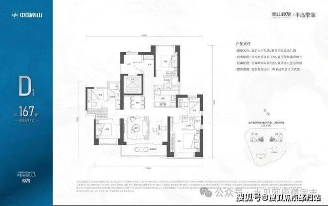 D1户型:167㎡5房2厅3卫