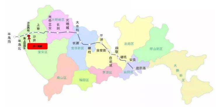对外链接东莞、广州、深圳多城市城际快线,未来随着粤港澳大湾区建设,将擎动珠三角百万商务办公人群,对内直达深圳核心枢纽,1站通达机场,与1号线、11号线、20号线、12号线、18号线多轨道交汇,未来还将在前海设站,全线开通后,6站可到达前海,尽享前海高端商务人流