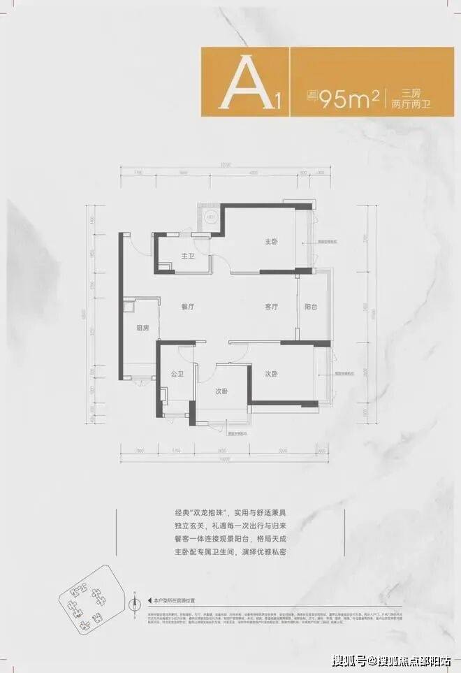 95㎡三房:竖厅设计,6.2米景观阳台,U型厨房+干湿分离卫浴,总价395万起,适合年轻家庭。