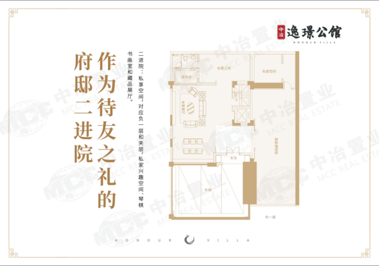 二进院:6米挑高中空会客厅,可定制茶室、书房;