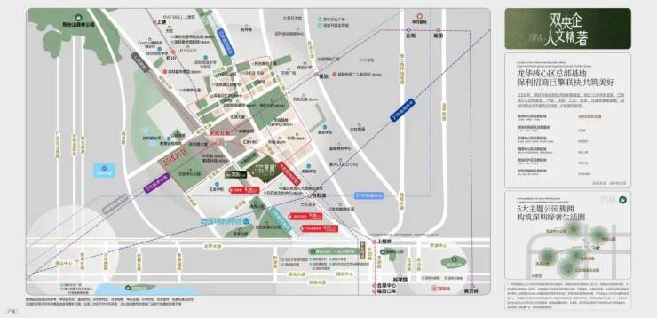 深圳保利招商龙誉位于龙华区新区大道184号,由保利和招商两大央企联合开发。项目提供79-125㎡的多种户型,精装修交付,预计2025年交楼。周边交通便利,紧邻深圳北站和多条地铁线路,学区资源丰富,生态环境优越,是一个集高品质住宅与优质配套于一体的都市绿奢公园住区。