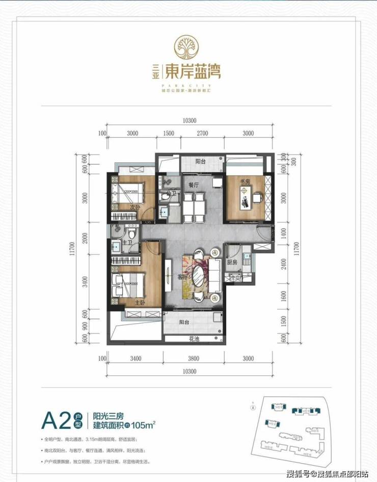 ▼A2 户型:105㎡ 阳光三房