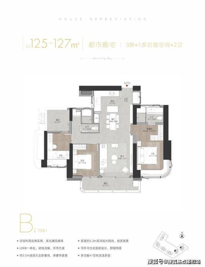 T6(三单元)为总高58层的商品住宅,4梯6户,面积为111-124㎡3-4房。
