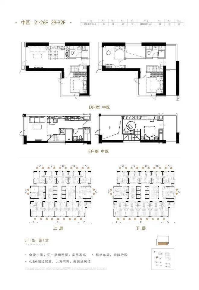 5栋小户型公寓,总高37层6梯23户,南向(50、75㎡);北向(40㎡;22~26层41、81㎡复式);