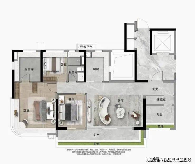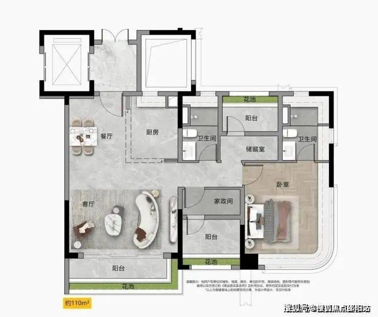 “宽幕视野” 南北通透双视野,主卧270°转角飘窗