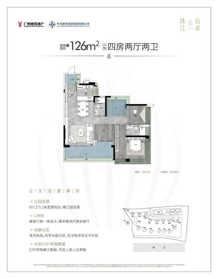 全独栋2梯4户高层住宅+1梯2户多层洋房产品,尊梯入户,南向环幕大宅,户户看江,户户望景。臻稀125-142㎡四房两厅两卫、214-313㎡低密大平层,奢享珠江纯粹圈层。