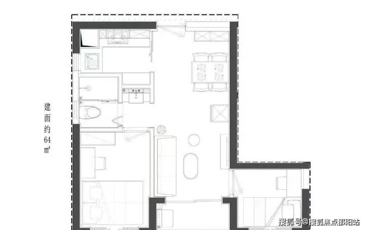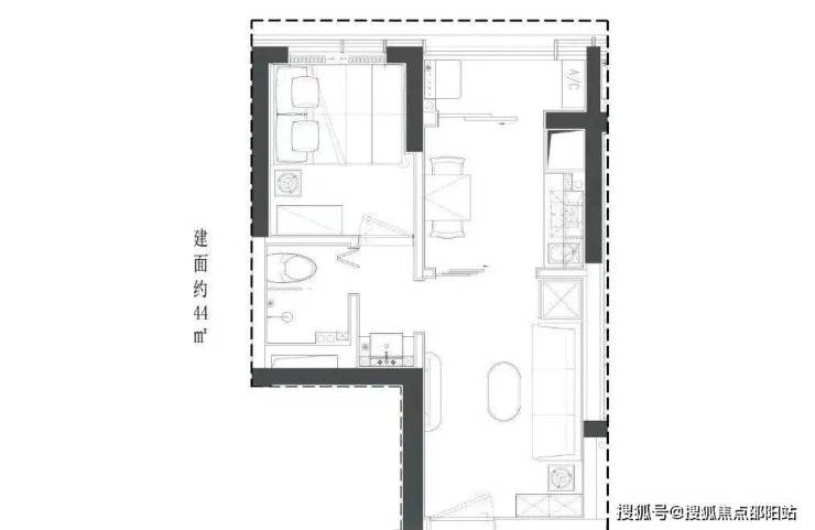 目前在售的商务公寓户型包括44㎡的1房、53-56㎡的1房以及63-65㎡和71㎡的2房2厅1卫。