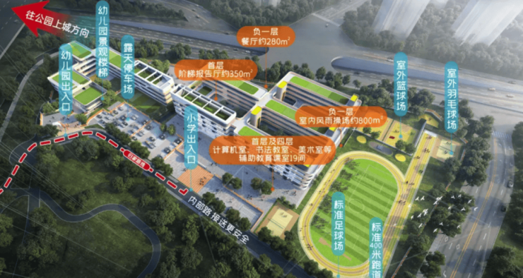小区自带 18 班公立幼儿园和 30 班公立广东外语外贸大学增城实验小学 ,招生范围仅针对本小区,目前学校已经开学,家长接送孩子非常方便。