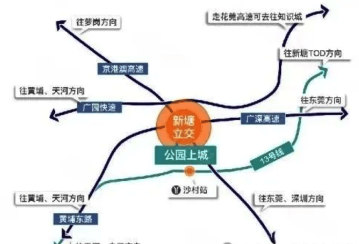 高速出行:从项目出车库就能直接上京港澳高速 ,快速抵达黄埔区府和天河 CBD ,前往穗莞深等大湾区城市也十分便捷。如果前往萝岗方向,走花莞高速还能去往知识城。