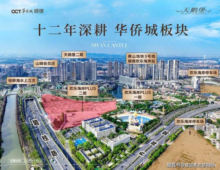 承接顺峰山湿地公园、佛山顺德欢乐海岸PLUS一二期板块等城市优质资源,延续华侨城天鹅堡高端产品基因,赋能片区人居价值的品质升级,为更多的城市新贵打造进阶的生活主场。