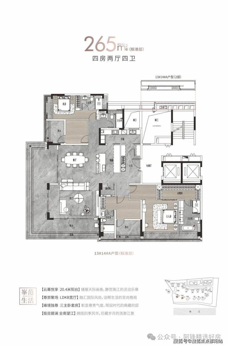 白云首个珠江大平层,125-142㎡南向江景4房,214-319㎡大平层,超高使用率,江景豪宅,市场罕有