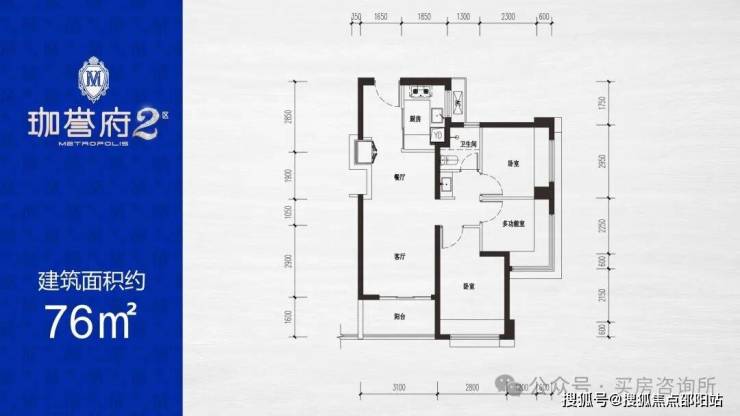 约110㎡:3+1房2卫,南北通透,灵动空间可作书房或多功能区;