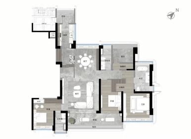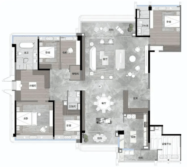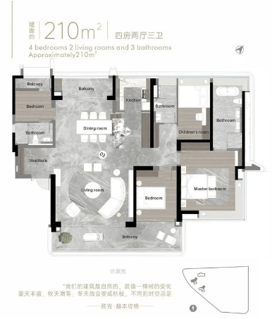 项目分两期规划共26栋住宅,目前一期已大部分交付,二期即将封盘。尤其是在售的6#栋,建面约220㎡四房户型,全栋仅规划76套,真正实现高端圈层的私密纯粹。产品以四开间朝南、双主卧套房、LDKB一体式公区等设计,满足塔尖人群对生活空间、家庭场景与社交礼仪的多重想象。