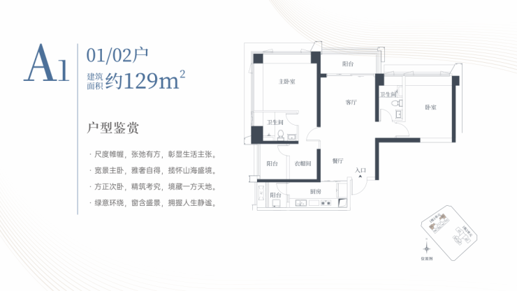 🔹1栋一单元A1、A2户型:面积约为129㎡