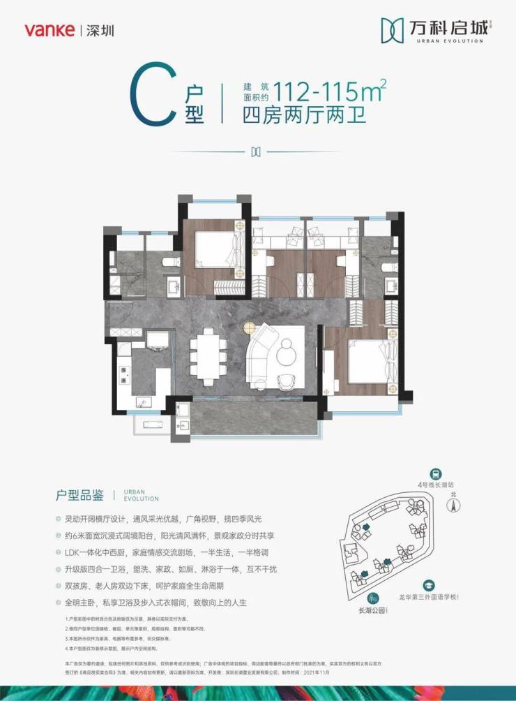由深圳长湖置业开发、万科物业管理的万科启城,作为龙华区TOD模式开发示范项目,定位为城市综合功能体。项目总占地6.5万㎡,总建面52.8万㎡,容积率6.14,规划建设30层高层建筑群,涵盖精装住宅、商务办公及复合商业业态,形成多维度城市生活场域。