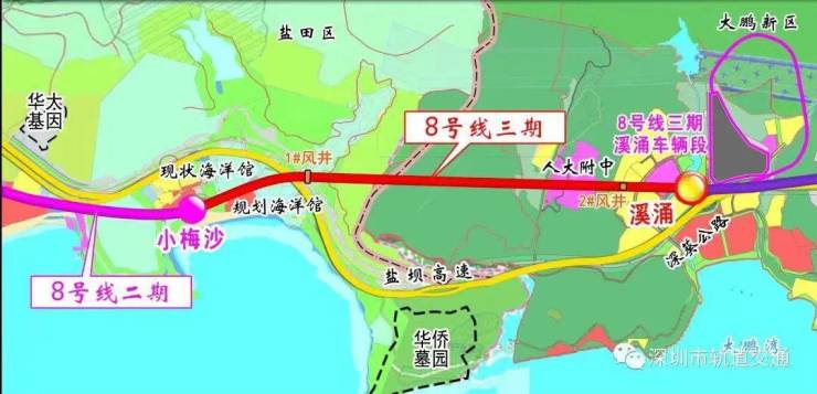 轨道8号线三期,自小梅沙站后接出,终至大鹏新区的溪涌站,预计2026年通车。