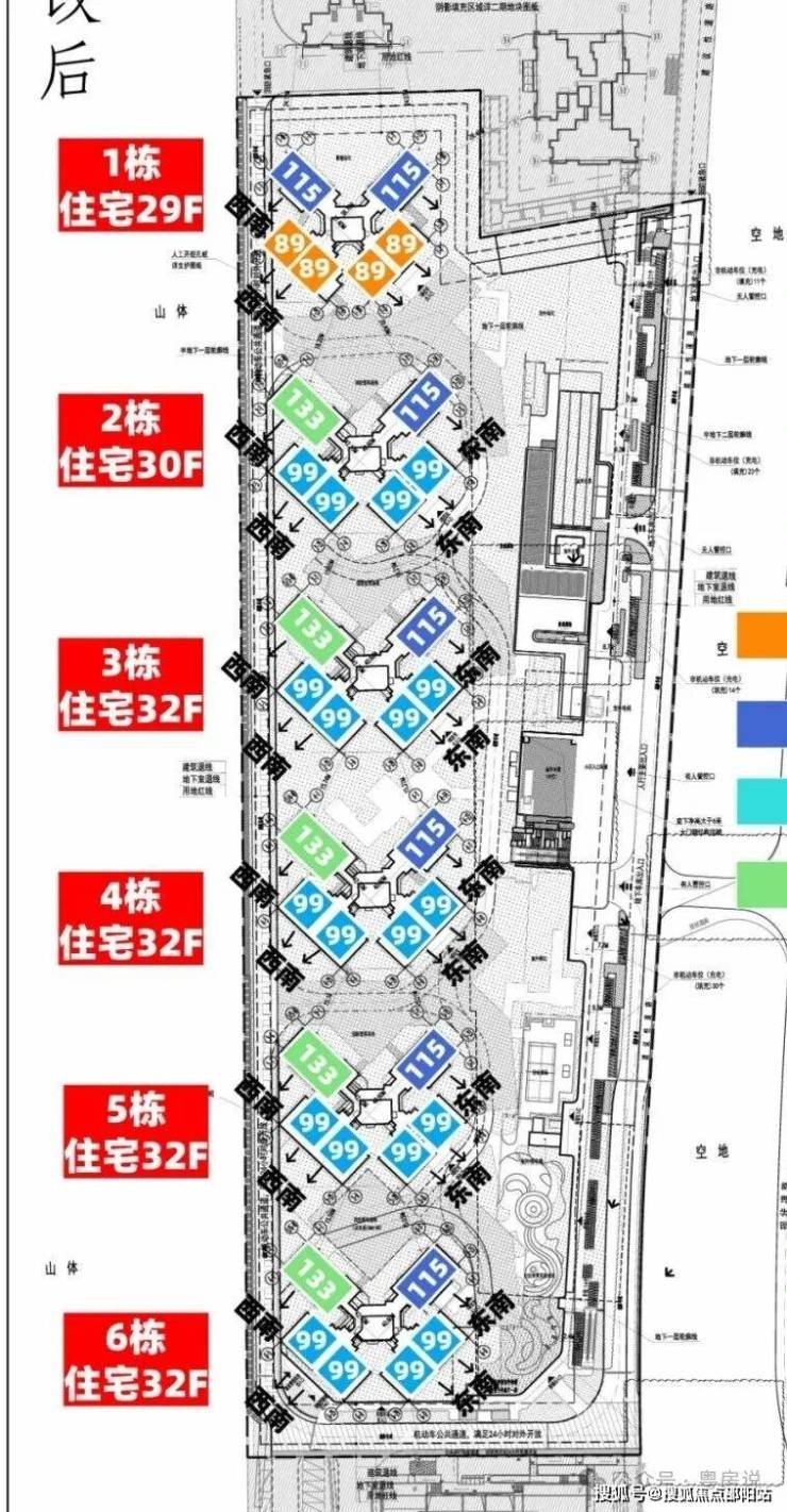 乐城3期是新规产品,得房率得到很多提升,高达100%,其中83㎡做到了3房2卫,99㎡竟做4房2卫。另外乐城3期都是非超高层(29-32层),所有单元均为3梯6户,户型朝向错开设计,确保每一户都是全南向户型,采光充足。在装修方面,也进行了全面升级。