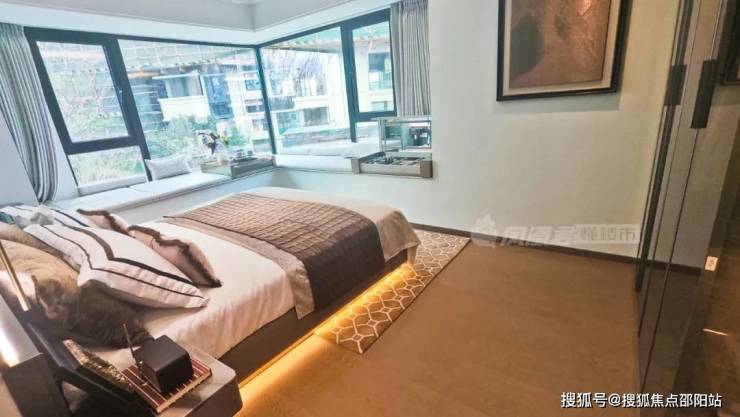 主卧是一个大套间,配有独立卫浴,随时能享受私密二人世界。而且同样的带有270°L型大飘窗,躺在床上也能享受“环幕美景”。