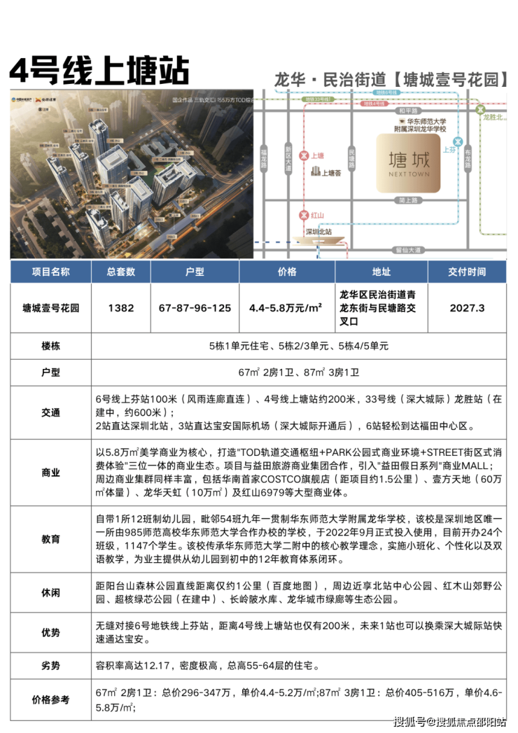 龙华上塘板块,塘城壹号花园,双地铁TOD综合大城。