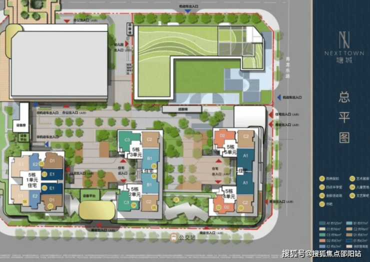 项目总占地面积约3.5万㎡,容积率12.11,绿化率30.05%,分南北区共3个地块开发建设,总共建设6栋住宅+3栋写字楼。