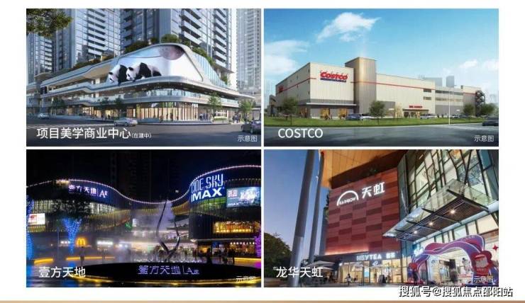 <商业>:周边商业集群同样丰富,包括华南首家COSTCO旗舰店(距项目约1.5公里)、壹方天地(60万㎡体量)、龙华天虹(10万㎡)及红山6979等大型商业体。