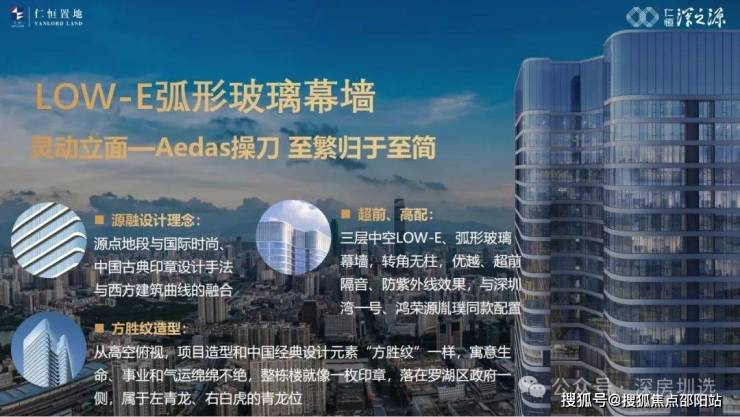6、源系TOP级作品: 云端地标 环幕视野0约208米云端地标,270°环幕视野,坐拥地标级城市景观与稀缺山水资源:2定制超白三层中空LOW-E曲面玻璃搭配横向铝板线条,标识性的超流线立面建筑