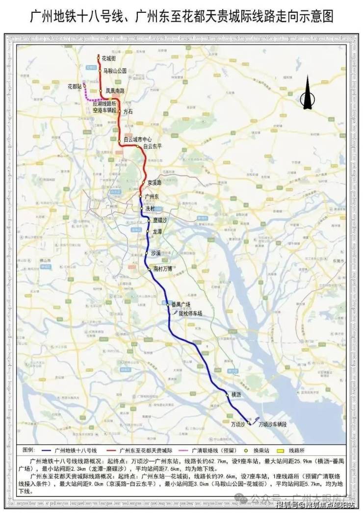 地铁也有分为运营中、在建中、规划中三种,18号线就属于这一种,18号线分为一,二期,一期始发于广州最南端南沙的万顷沙站,从南沙贯穿番禺、海珠、天河、白云,最后来到二期的终点站花都的花城街站,从南至北贯穿广州的6个区。