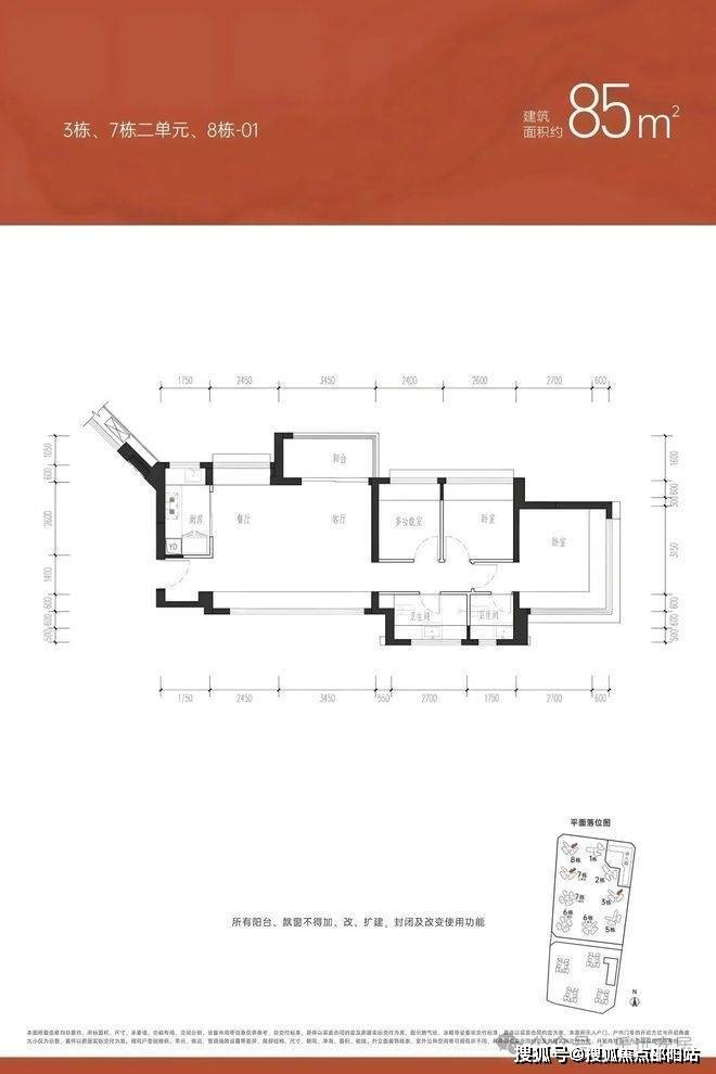 【约85㎡三房两卫】户型分布:分布在7栋2单元、8栋、3栋,共710套