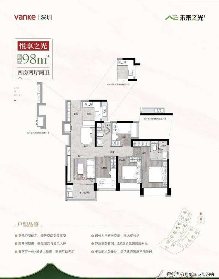 3️⃣ 稀缺产品:80㎡做三房两卫(得房率90%),98㎡四房680万起,113㎡板式洋房仅剩10套!低密2.91容积率,6山2水环绕,推窗见绿。