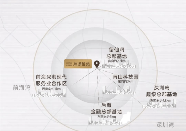 💎后海金融总部基地、深圳湾超级总部基地(东南向约6km):中国总部企业最为密集区域之一,规划就业人口约为54万人。