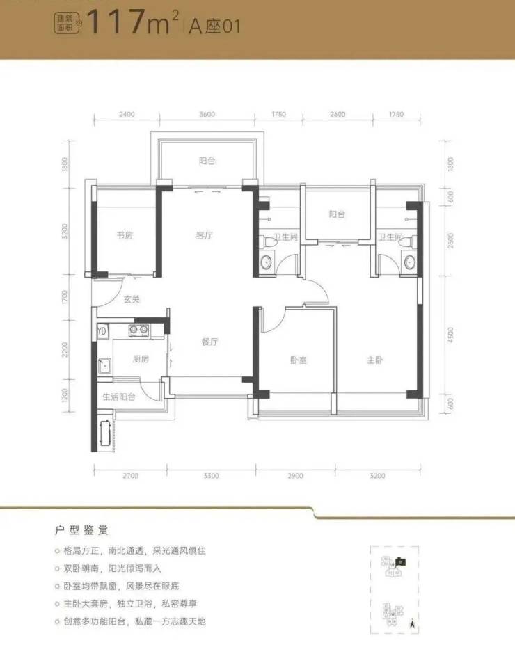 :总价309万起,次卧面宽仅2.5米,需封阳台改造功能性空间;