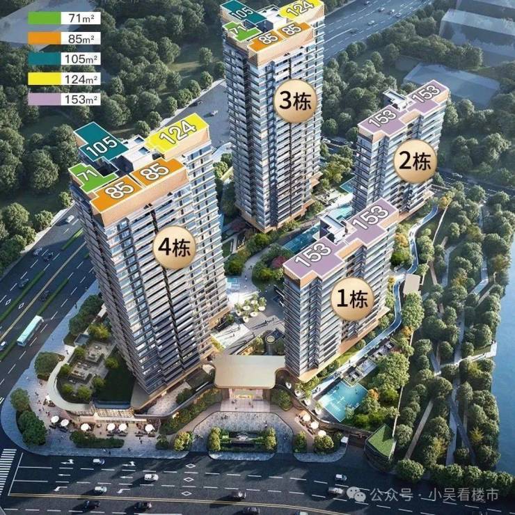 1栋、2栋:是13-14层的小高层,2梯2户,靠近杨梅河,更安静、更舒适;