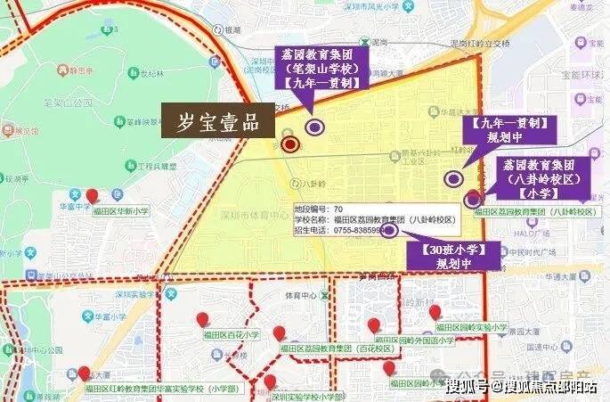 5、教育氛围——荔园教育集团(八卦岭校区)已于2022年9月开学,是本项目的临近学校,且项目西侧由岁宝代建的荔园教育集团(笔架山学校)计划2024年竣工,项目北侧为深圳中学,整个片区教育氛围浓厚。本项目临近之学校的申请学位及落户条件以政府(包括但不限于教育主管部门)颁布的政策及学校规定为准,开发商不做任何承诺。